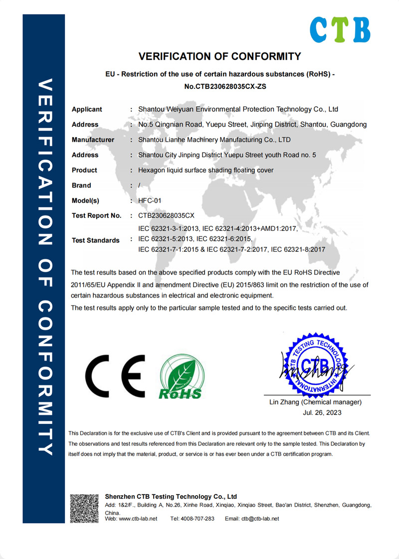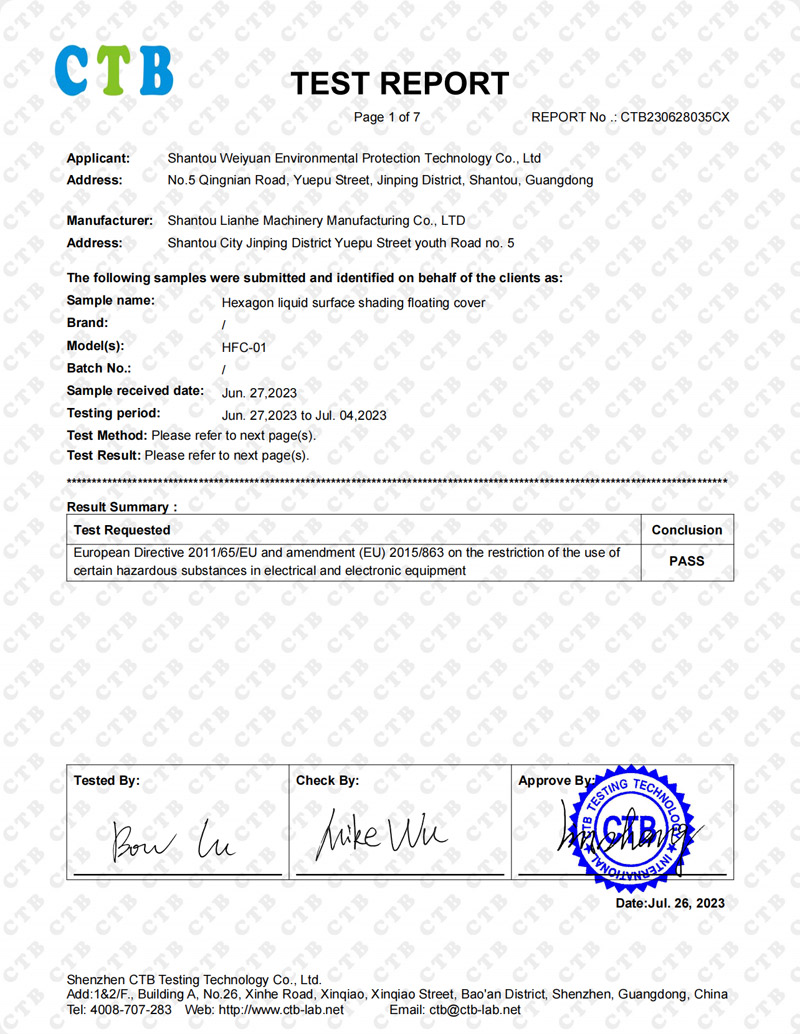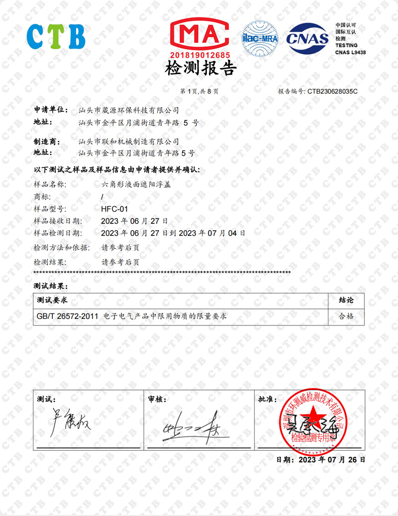 汕头市葳源环保科技有限公司是位于中国广东省汕头市的环保科技企业,拥有超过20年塑料制品的行业经验,近年来我们致力于水资源保护产品的研发生产,与中国西北农林科技大学、中国渔业工程技术研究院等科研院校展开新技术开发研究合作,其中创新性的六角形遮阳节水浮盖已通过多项技术验证并获得国家专利授权,产品广泛应用于节水工程、水务处理、水产养殖、环境保护等多领域。